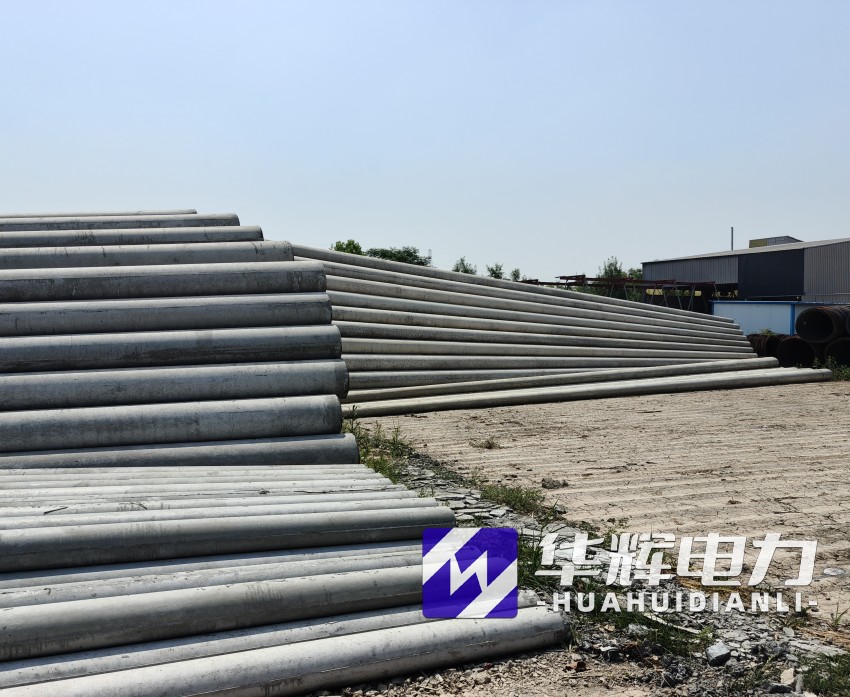 8米临清水泥电线杆通常采用钢筋混凝土离心成型工艺,杆体呈锥形结构,梢径150mm-190mm,根径230mm-270mm,壁厚40mm-50mm。根据标准GB/T4623-2014,产品混凝土强度等级不低于C40,主筋采用HRB400级钢筋,配筋量根据抗裂弯矩要求设计,标准抗裂弯矩可达12-18kN·m,破坏弯矩不小于24kN·m。杆体重量约0.5-0.8吨,运输安装便捷,适合人工或小型机械施工。